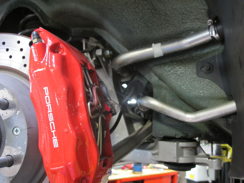 This car belongs to a customer who had an exact vision for this car. It arrived as a completely stock car that needed some cleaning and detailing. We ended up getting into nearly every part from the top to the bottom. On the outside you’ll spot a euro bumper (with no bumperettes) with a Turbo S front spoiler and Turbo S cooling ducts. The ride height is dropped to ROW specs with a set of H&R coilovers while custom three-piece Forgeline wheels replace the original hollow spoke twists. Inside, a full German-made carbon fiber package went in for appearance. For entertainment, we installed a Porsche navigation system (the car is destined for Europe,) Rockford Fosgate amplifiers and Morel component speakers. The chassis was dry ice blasted and cleaned to better than new. Billet valve covers keep leaks at bay while the red anodizing adds color. The exhaust system is from M&M Germany and features speed sensitive Valvetronic actuators to maintain ECE drive by noise levels while sounding great on the open road. Overall it’s an amazing transformation of an already brilliant car.
