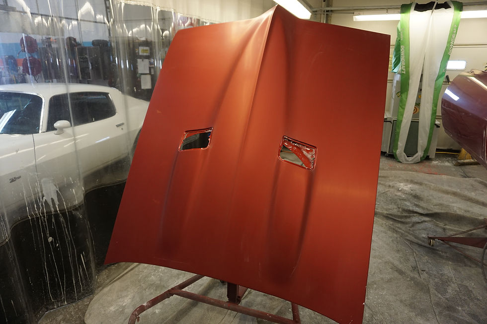 A customer requested a color change for his 1968 Firebird. We discovered the left rear corner had been punched in and filled with Bondo rather than straightened properly, and what looked like 50 years worth of parking lot door dings that peppered the sides. The paint was flaking off from most every seam and joint on the car. We sanded the body to bare metal and were quite surprised at how good the body actually was. It needed a few small patches but this was one of the most solid 1960’s convertibles we’ve seen in a while. We fixed the problems, added an awesome scooped 400ci hood and a ‘69 T/A spoiler, and then spent days making it straight. The trim was largely replaced, mechanical issues were addressed and the car was buffed and hand finished. It’s a stunning car from any angle.